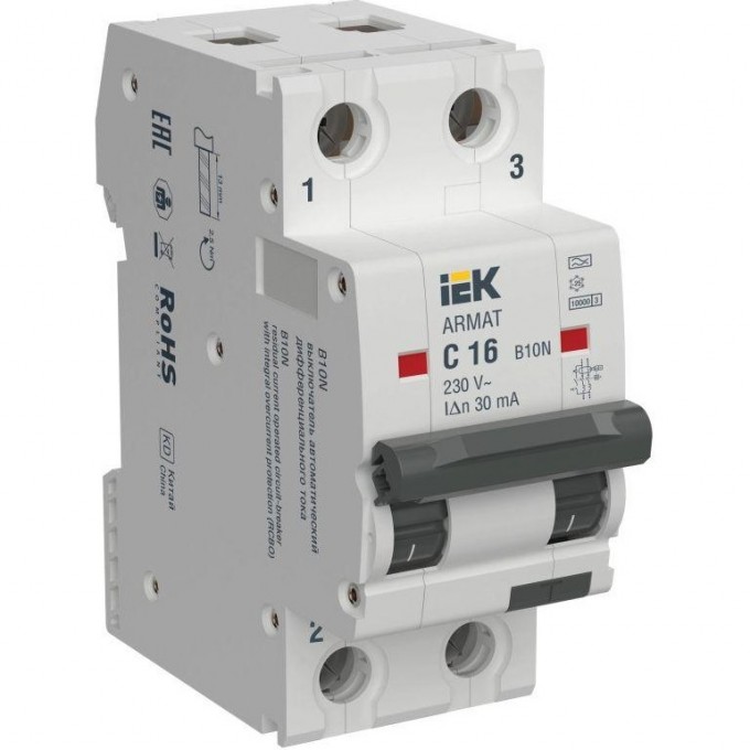 Выключатель автоматический дифференциального тока IEK ARMAT B10N 2P C16 30мА тип A AR-B10N-2-C016A030
