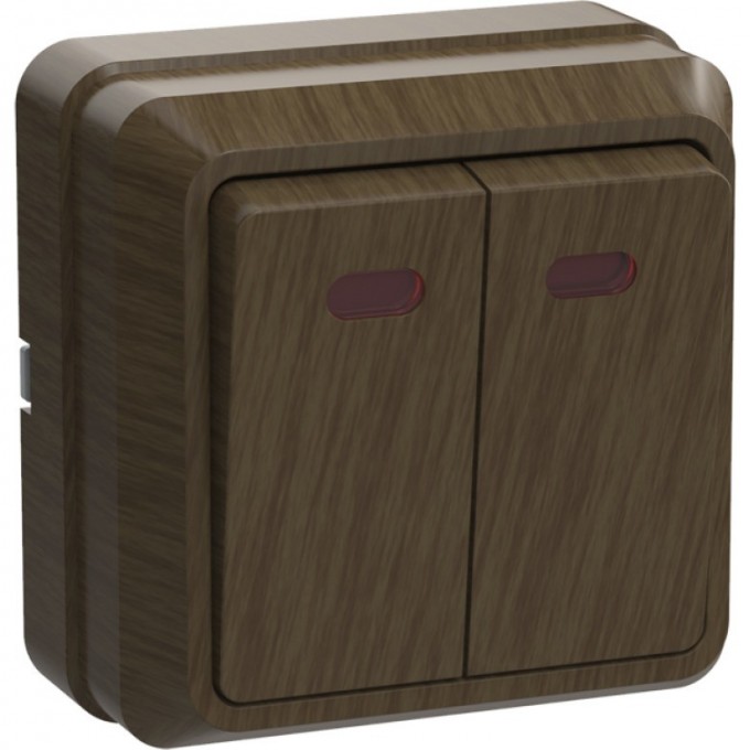 Выключатель IEK 2-клавишный для открытой установки с индикацией ВС20-2-1-ОД 10А ОКТАВА дуб - EVO21-K04-10-DC